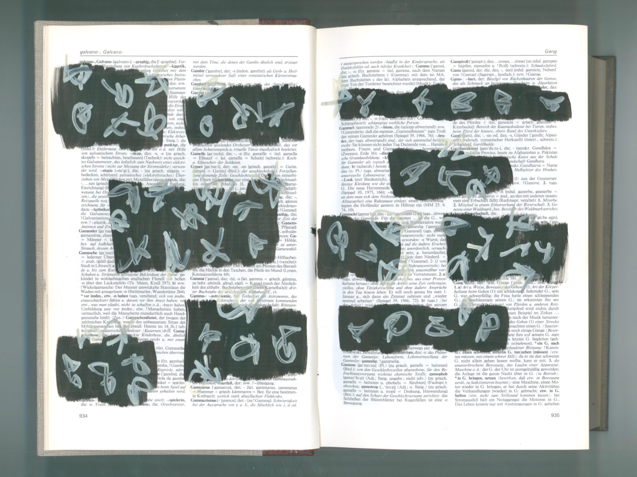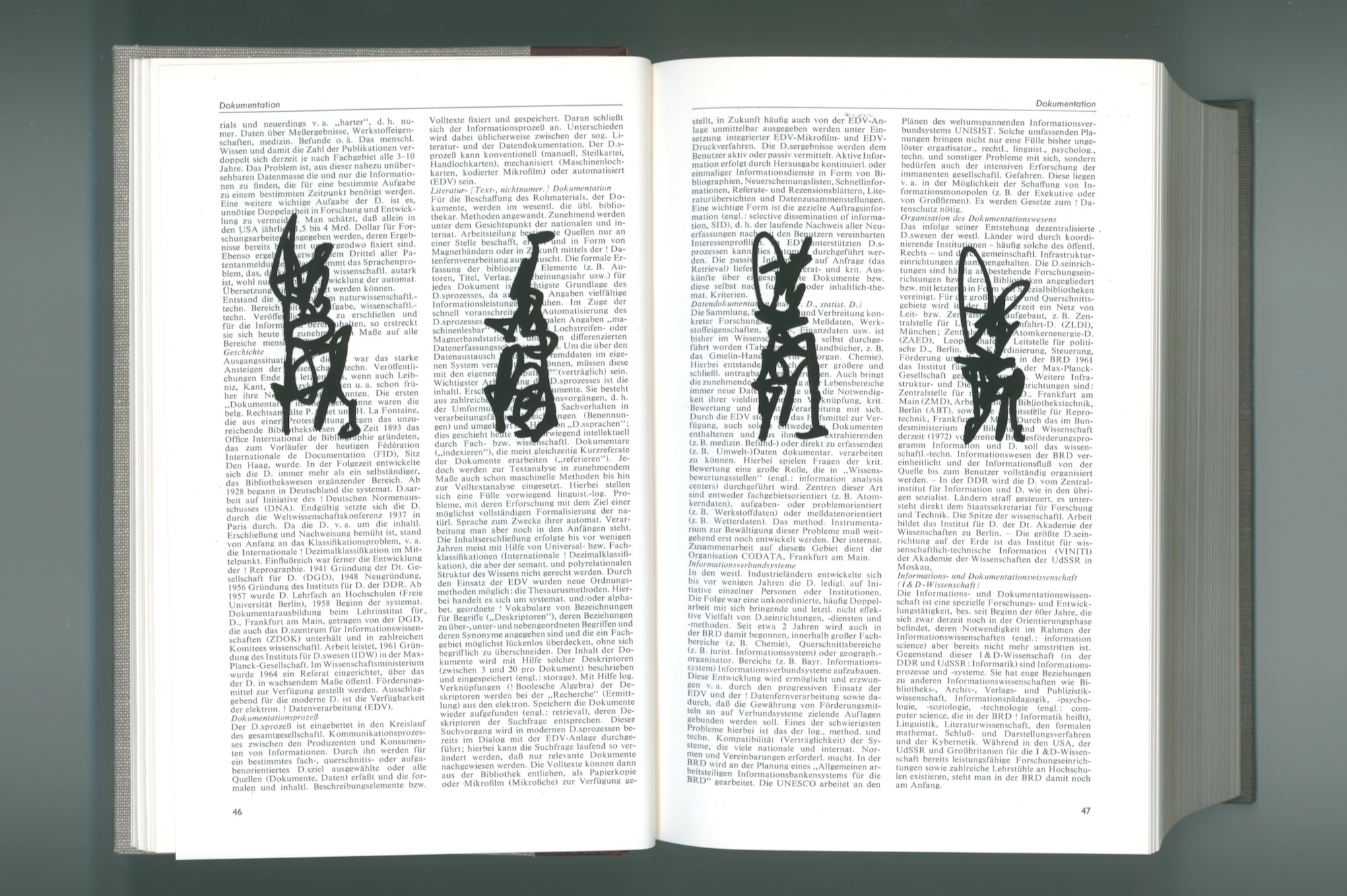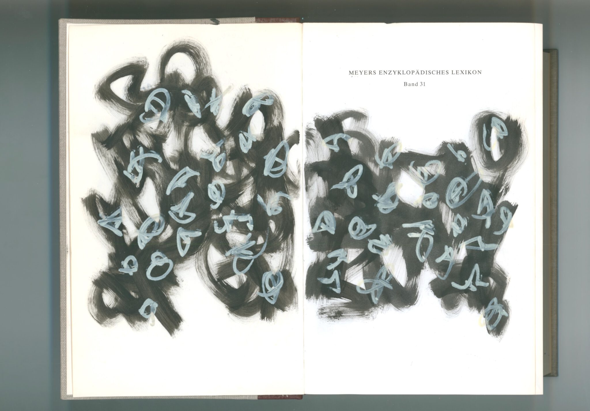 52 außen und innen skriptural überarbeitete Bände von Meyers enzyklopädischem Lexikon. Standort: Gruppenraum PC-Pool, Raum 005